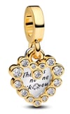 This two-toned sterling charm has two separate heart-shaped dangles.