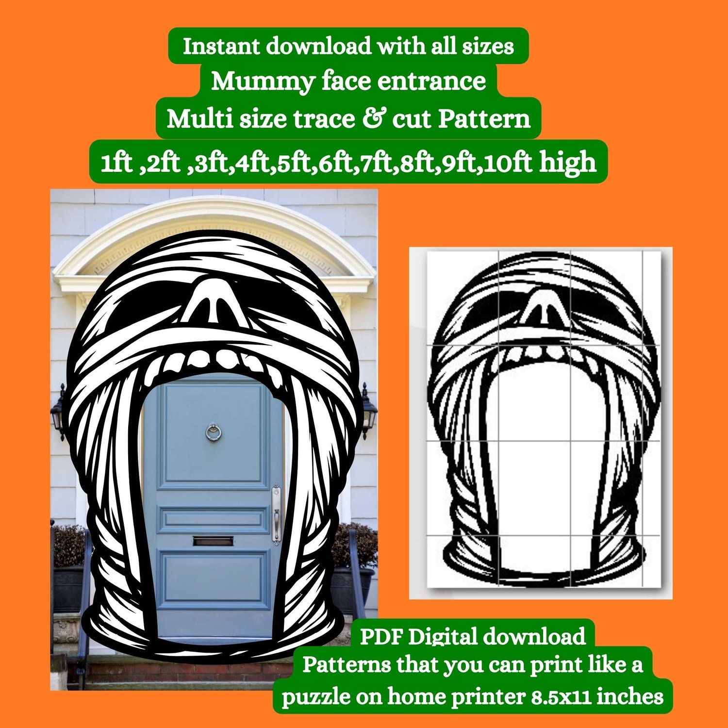 Life size, Large small Scary mummy scream face arch, 1ft 2ft 3ft 4ft, 5ft, 6ft 7ft 8ft silhouette Template stencil pattern, cemetery scene trace & cut pattern, Halloween yard art, print, trace and cut Décor, Digital Download, Pdf Printable cuto
