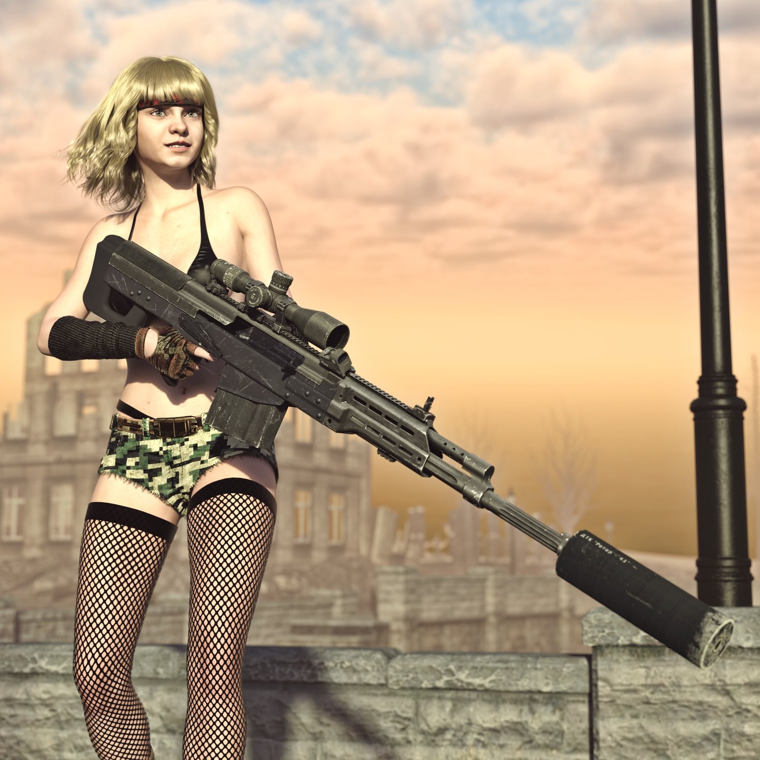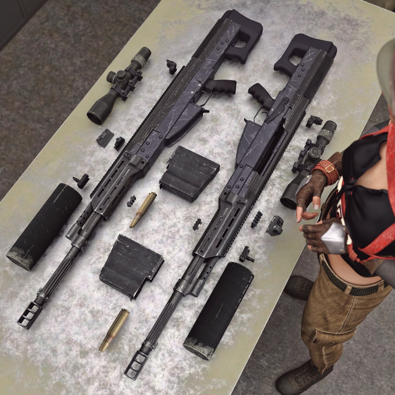 You can think from a first glance that this is a Barret. But no, it's .50 caliber AK, designed and made by a famous guy, for which we're grateful. Rigged and converted for use with DAZ. Good power and looks in the modern fashion. The prop has multiple parts so you can customize it as you wish, from the simple configuration to a heavy postap sniper rifle. Very unique and cool looking gun. Includes an optic, a side red dot sight, a silencer and iron sights. Trigger, safety, bolt, etc also rigged for more realistic pictures. Optic and iron sight also rigged, for various porpoises and pictures.