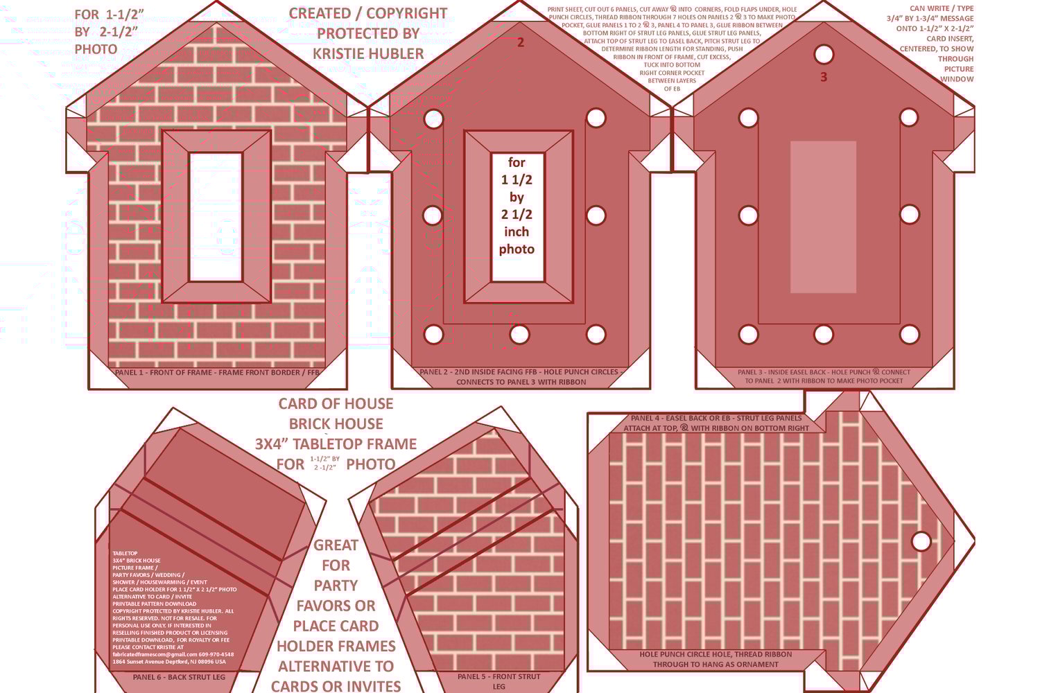 Brick House Tabletop Picture Frame Ornament design, structure, printable, and download are copyright protected by Kristie Hubler. All Rights Reserved. Not for resale. For personal use only. If interested in licensing the design, printable, download, structure, or want to resell the printed and handmade house frame ornament, please contact Kristie Hubler, for licensing and wholesale price list.