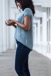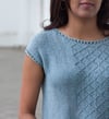 Perfect for the warmer months ahead, this is a drop shoulder boxy pullover worked from the bottom up. The hem is worked with short rows keeping the front shorter than the back. The body has about 6” to 8” of ease worked in. The sleeves and neck have an eyelet detail.