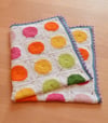 Here’s a way to make a fun and colorful baby blanket out of Tunisian crochet squares. For extra whimsy, sew on eyes or other little details to turn the dots into curious or happy creatures. Use bright, contrasting colors to capture the attention of your little ones.