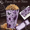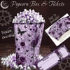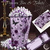 This is a set of 1 Purple Popcorn Box and Party/Movie Tickets with a gothic floral theme and butterflies! Easy to assemble, simply trim the A4 size sheet, fold the box, glue the base and the beige side label. You may also print as many tickets as you need. Save time by instantly downloading and printing the items, there is no shipping cost.
