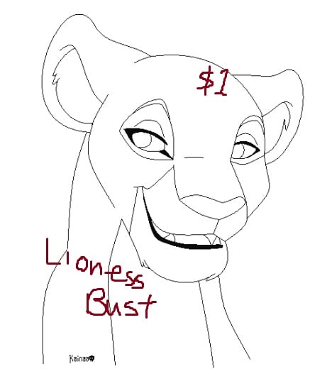 Smiling lioness bust.