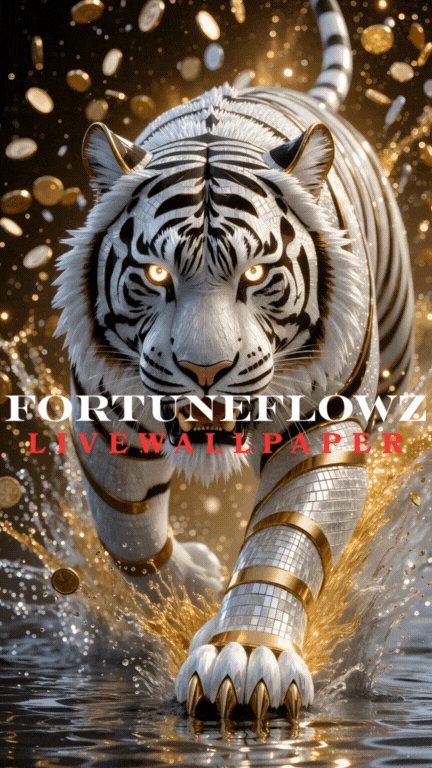 Unleash focused power, prosperity, and unstoppable momentum with White Diamond Tiger – Wealth in Motion, a cinematic 4K live phone wallpaper created by Fortuneflowz.