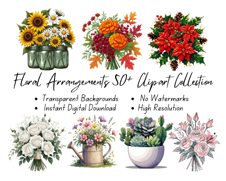 Floral Arrangements 50+ Clipart Collection | High-Resolution Digital Printables | Instant Download | No Watermark