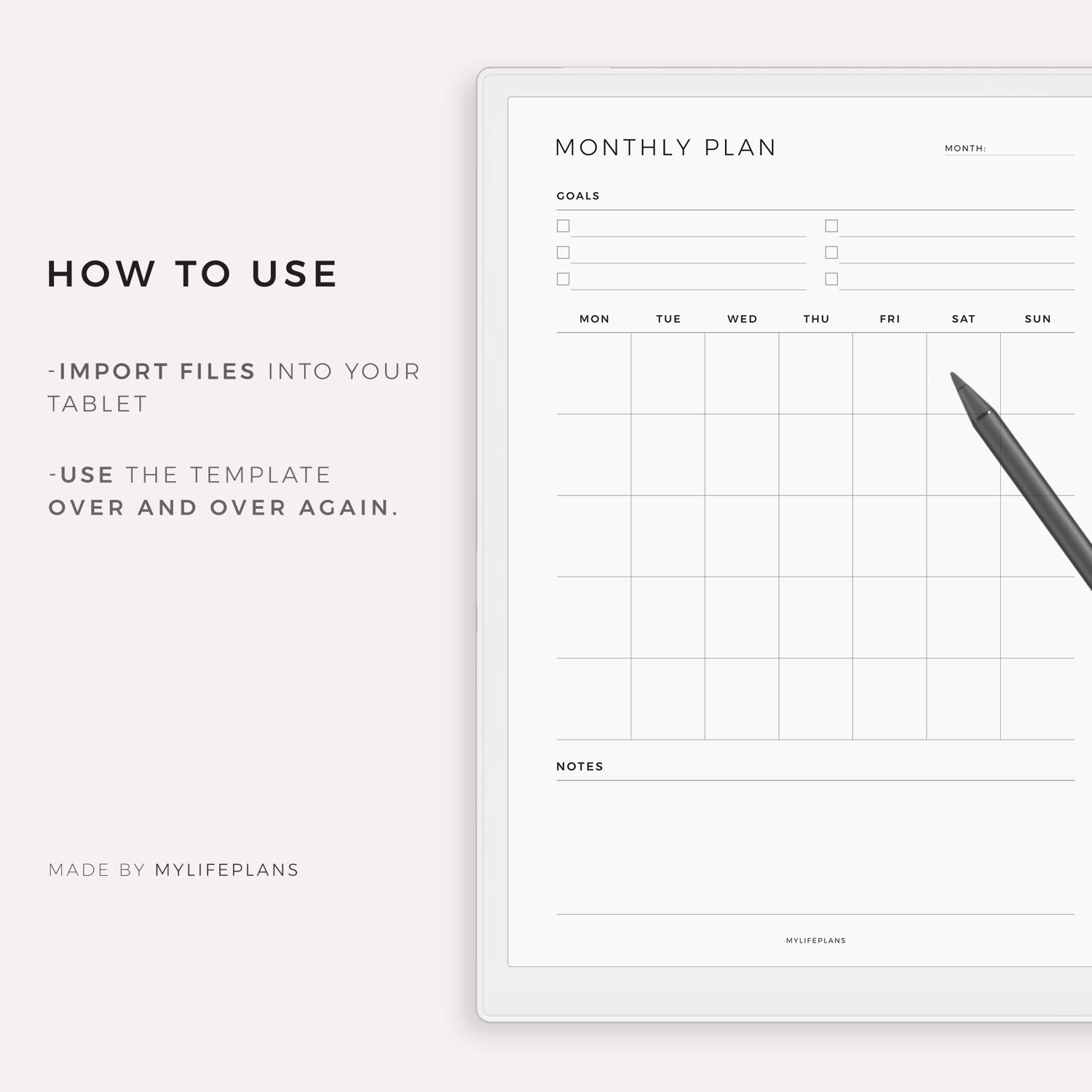 Monthly Goal Planner – A modern, minimalist template that works seamlessly with a wide range of e-ink devices. Simply download, import, and start using it right away.