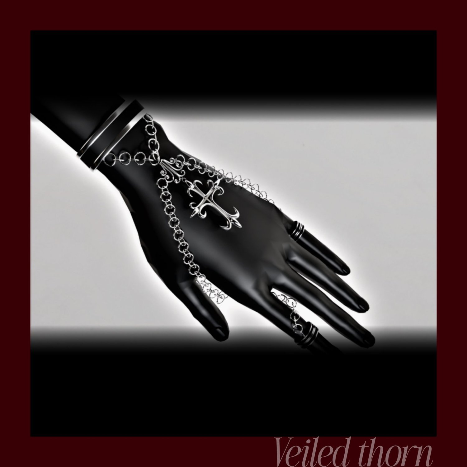 Elevate your avatar’s look with this darkly elegant gothic set. The collection combines a bold cross choker, matching earrings, layered wrist cuffs, and a graceful hand-chain, all designed with polished silver details and intricate scrollwork. Each piece is fully VRChat-ready, easy to fit, and perfect for avatars seeking a mysterious, vintage-inspired edge. Ideal for gothic, fantasy, or high-fashion themes, this set creates a cohesive, unforgettable style from head to hand.