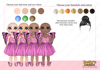 four different skin tones, three eye colours and 7 hair colours)