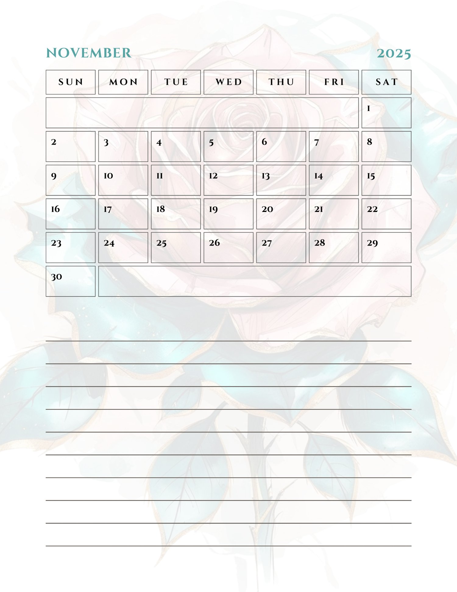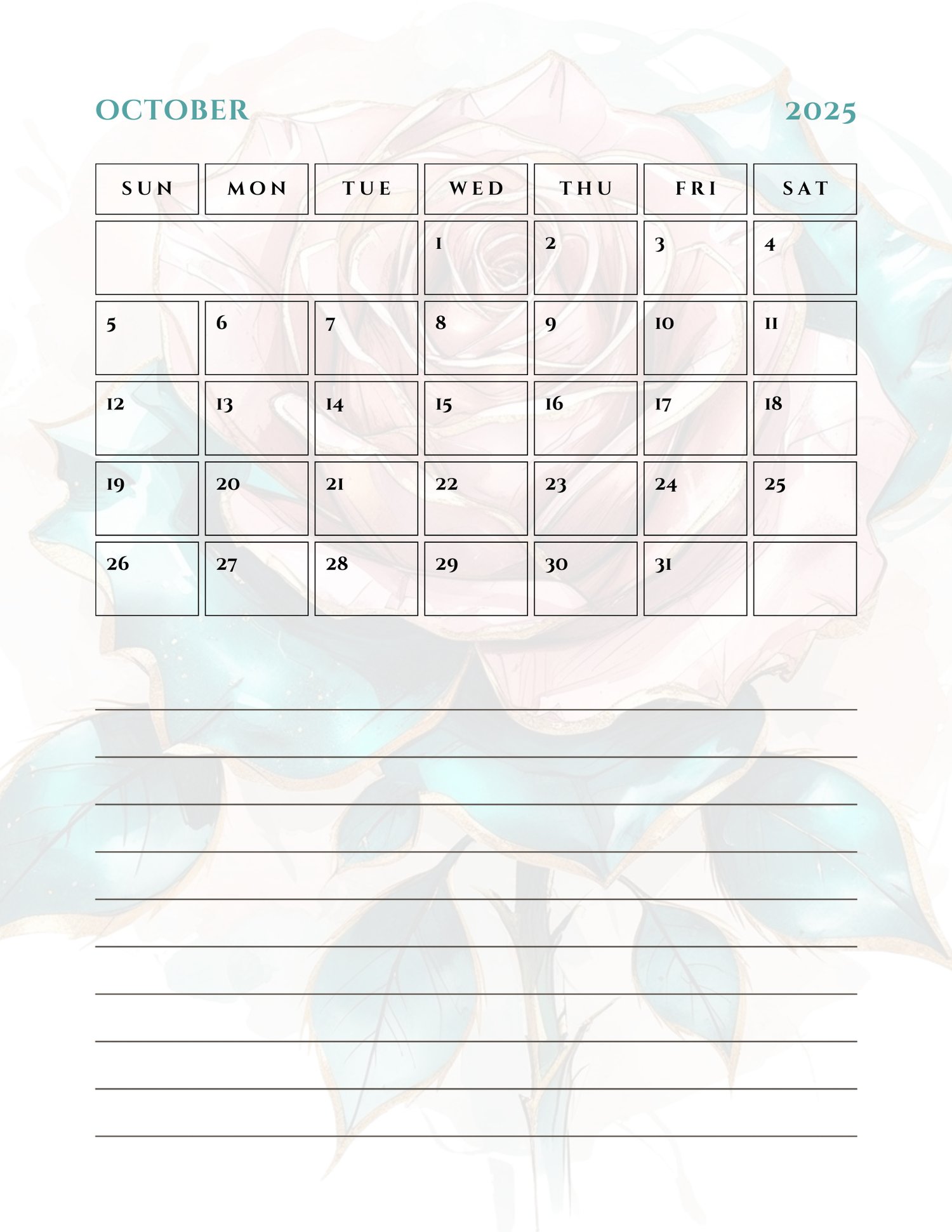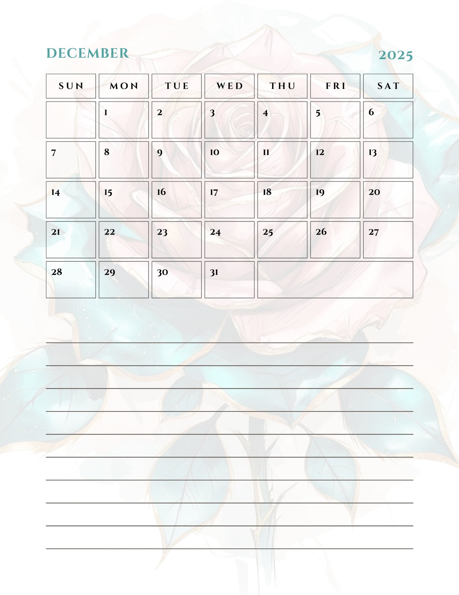 ✔️ Hyperlinked monthly to Google Calendar