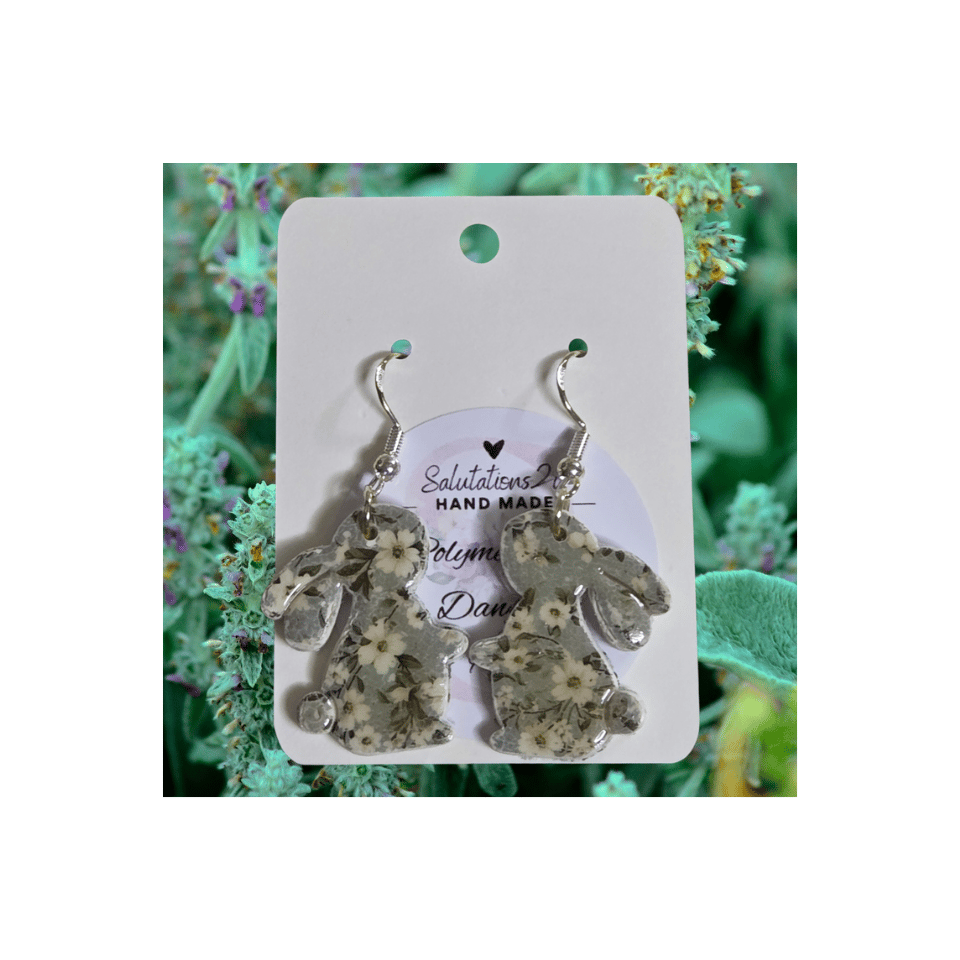 These Bunny earrings are crafted from smooth white polymer clay and finished with a delicate floral transfer pattern that gives them a soft, elegant look. The lightweight clay makes them comfortable to wear, while the hypoallergenic metal findings are gentle on sensitive ears. Their balanced mix of subtle color, organic shape, and refined detail makes them easy to dress up or down, perfect for everyday wear or special occasions.