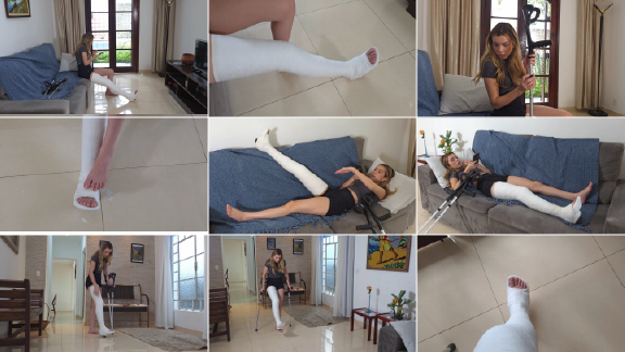 Julia just got home from the hospital. She's recording a vlog showing her cast to her followers, explaining how the accident happened and what it's like to wear a huge cast. She also shows what her crutches look like and how to assemble them.
