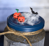 A perfect candle holder for fans of The Nightmare Before Christmas! It is made of glass, made by hand and inside it has an artificial led candle that imitates the effect of a real one.