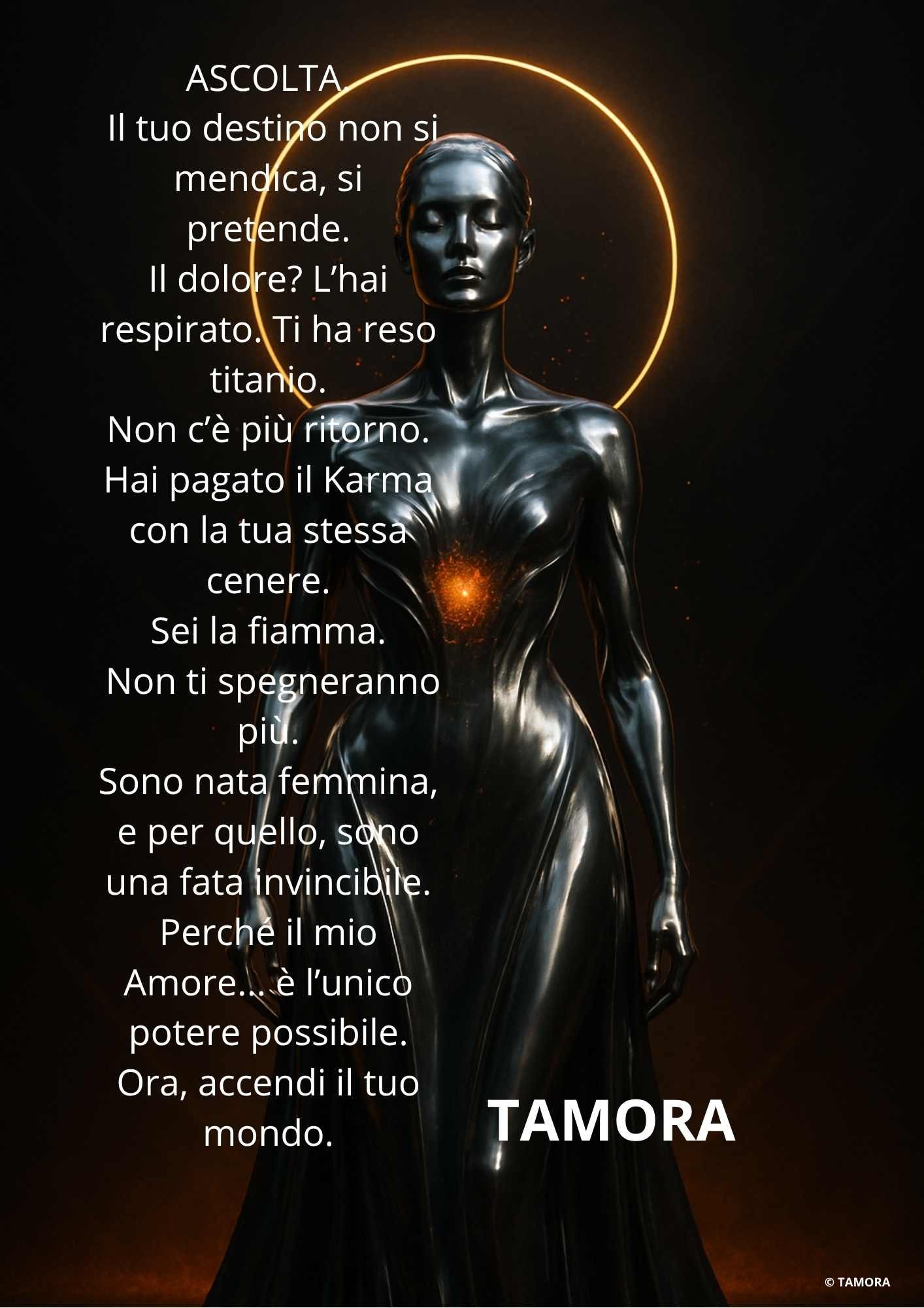 📌 Diritti d’uso Uso personale consentito. Per uso commerciale o editoriale contattare l’autrice. © TAMORA 🎥 YouTube –https://youtube.com/shorts/4ISpvfUac6I?si=IeH4n_x-aVBRNJqF Puoi ascoltare la poesia narrata cercando il mio canale magia-cartoon.it TAMORA e il video dedicato al “Bundle Fiamma”. -☕ Ko-fi / https://ko-fi.com/111tamora888 Freebie – Se vuoi provare il mio stile gratuitamente, puoi scaricare il poster A4 con la frase “Ho bruciato il dolore, ora sono fiamma.” cercando il prodotto gratuito corrispondente. -⭐ Fiverr https://it.fiverr.com/s/6YqYGVX – Poesia su misura – Se desideri una poesia scritta apposta per te, per una persona cara o per un’occasione speciale, trovi il mio servizio già attivo su Fiverr (profilo TAMORA): posso creare un testo personalizzato solo per te. #poesia italiana