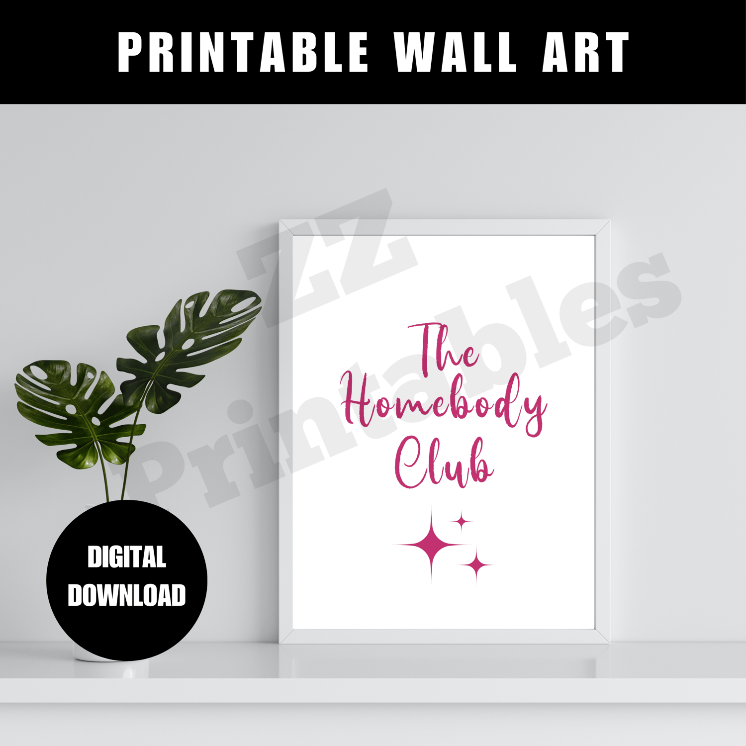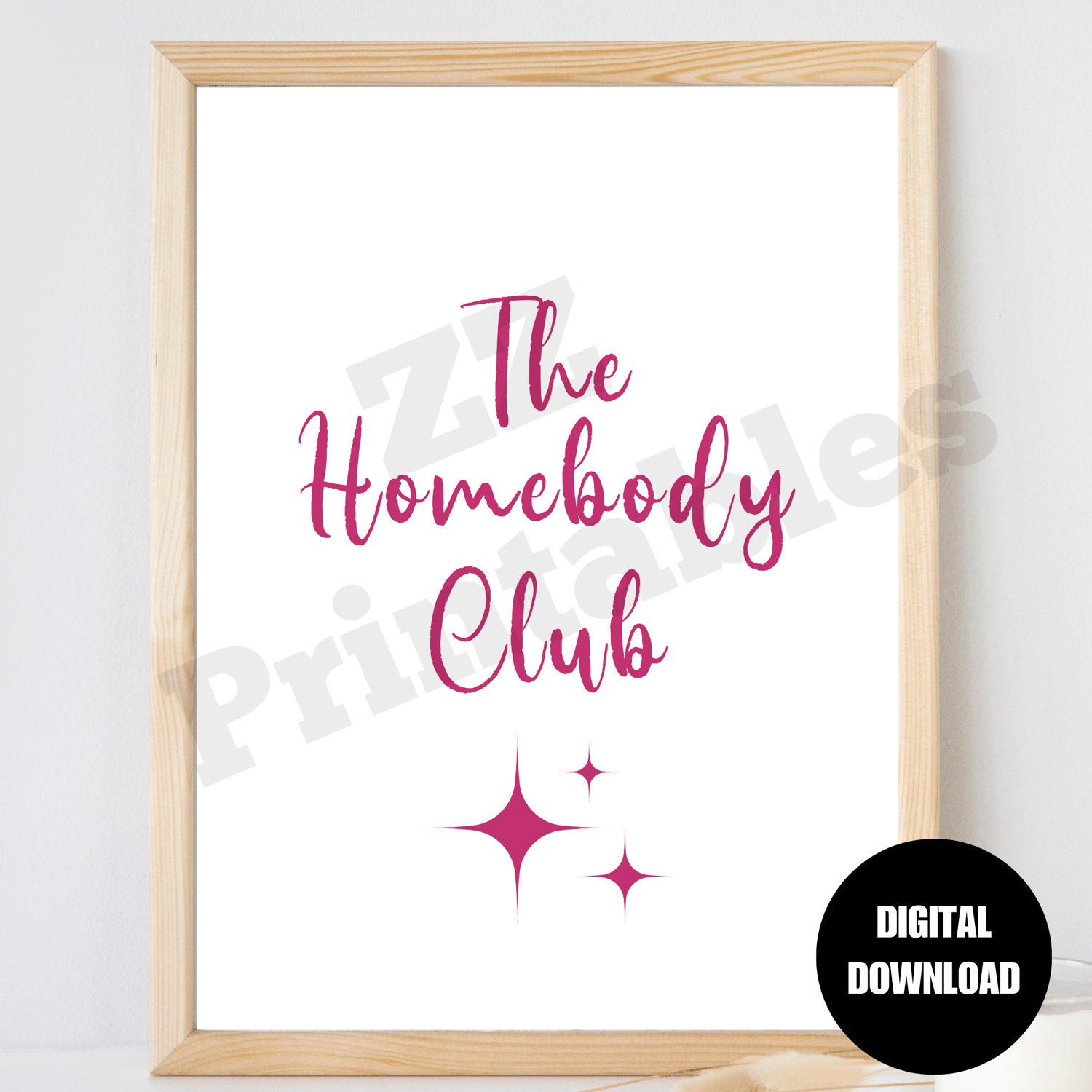 The Homebody Club Print Poster White Dark Pink Magenta Trendy Script Living Room College Dorm Decor Printable Wall Art Digital Download JPEG