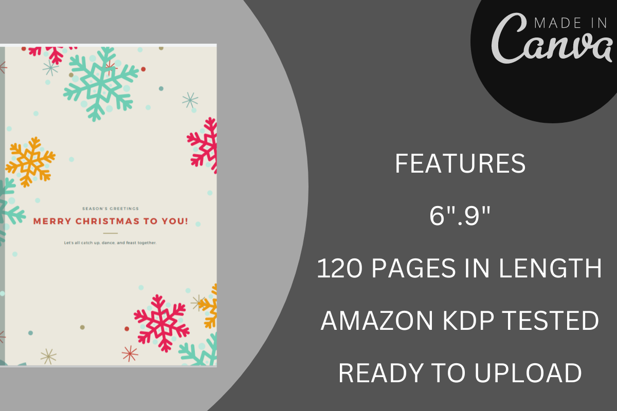 Improve your mental health by getting your desires, emotions, fears, and positive self affirmations out on paper. This journal interior is the first step in boosting your mental health and it's so cute you won't want to put it down. It is a 6" X 9" lined paperback Christmas notebook with 120 white pages and each page contains a header for titles or dates. This interior is perfect for creating professional-looking interiors for journals, notebooks, and other low-content books that require lined pages. This interior is fully formatted, ready to upload and compatible with Kindle Direct Publishing (KDP) guidelines, ensuring that your book will meet the requirements for publishing on KDP.