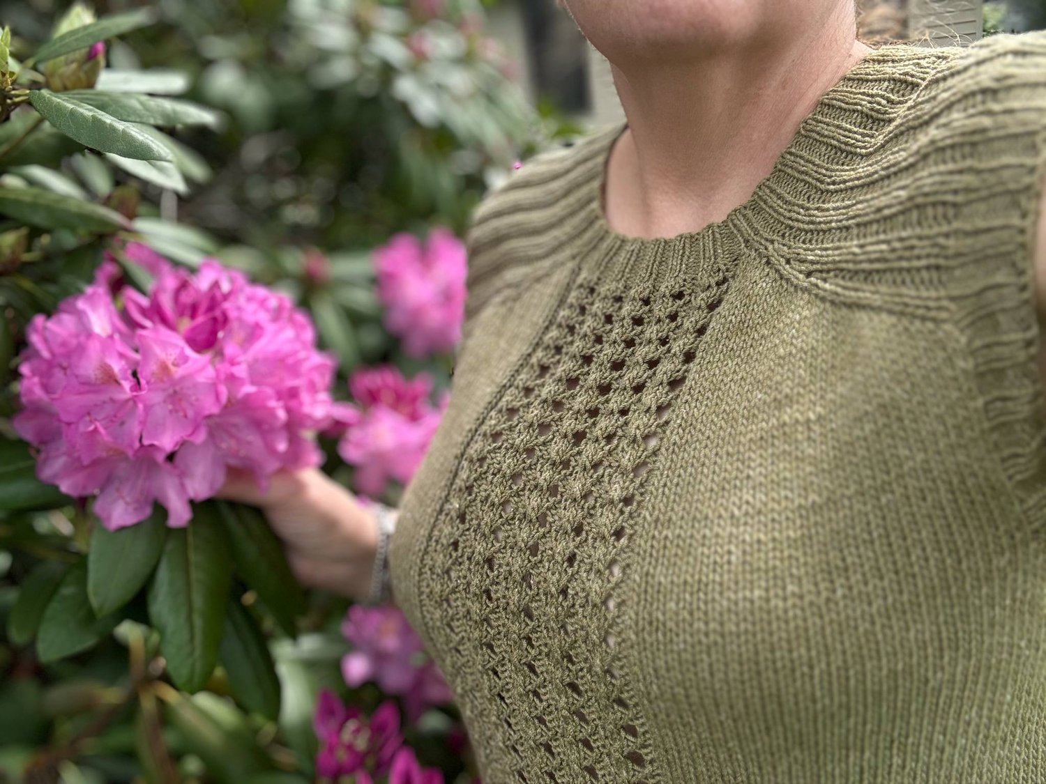 AWA is the summer knit that keeps you guessing—in the best way. At first glance, it’s clean, minimalist, and effortless. But look closer, and you’ll discover subtle construction details that make this top both intriguing to knit and elegant to wear.