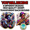 -8 PNG FILES (WITH TRANSPARENT BACKGROUNDS) at 300dpi.