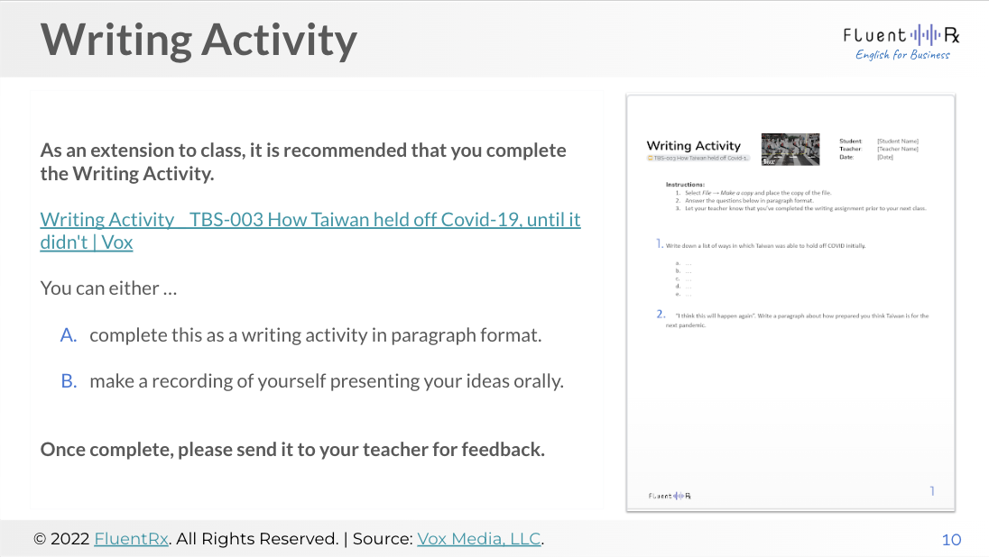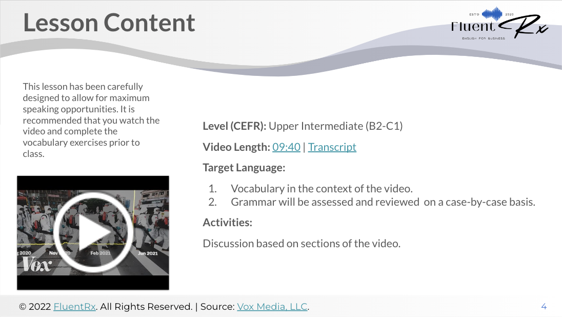 Lesson topics from the Talk Business Series are designed to prepare participants for speaking in workplace environments. Rather than using textbooks, Authentic Materials are used exclusively to inspire a range of speaking modalities in a real-world context.