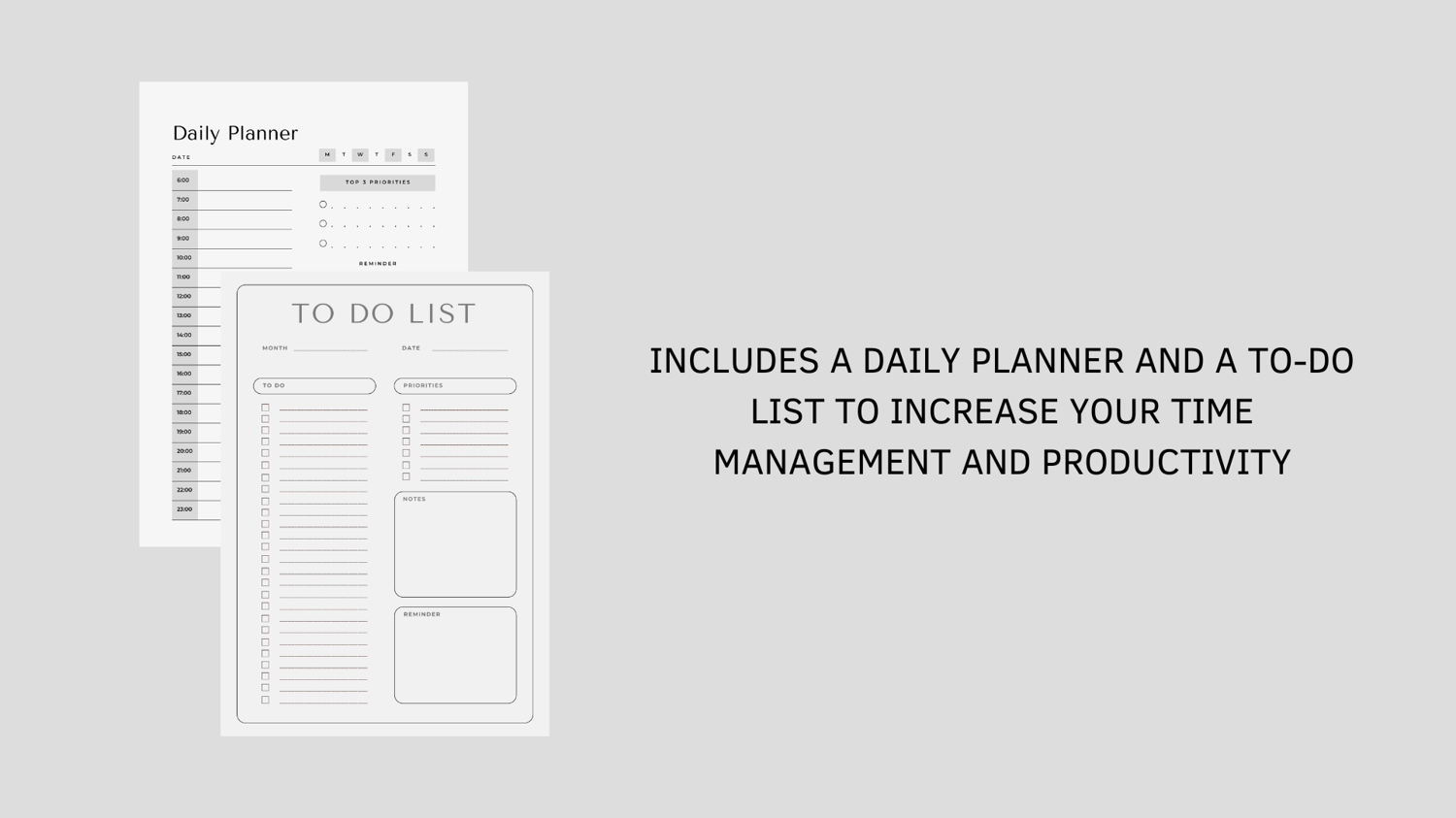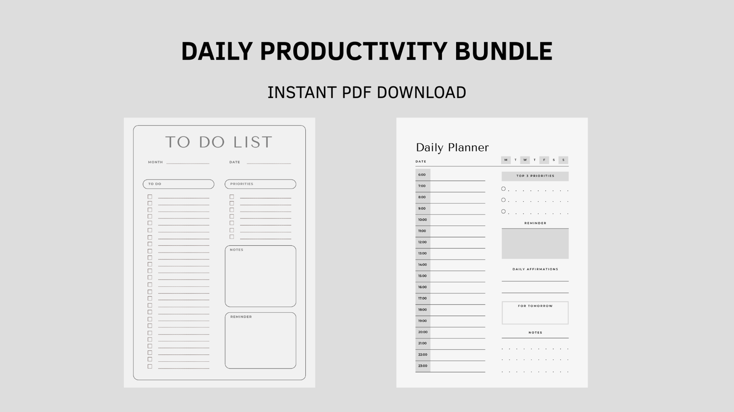Stay organized and achieve your goals with the Daily Productivity Bundle – a set of two printable PDF tools designed to boost your time management and productivity.