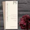 This wedding invitation comes in a distinctive, long card design, with the couple's names aligned along the left edge and the event information displayed adjacently in modern fonts. Chic and straight-forward.