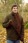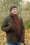 A 3-piece winter set to fit average adult, with negative ease for hat and gloves. Clean rib pattern, nothing fancy - just the way most men prefer. SCARF and HAT are very easy, GLOVES are more challenging.