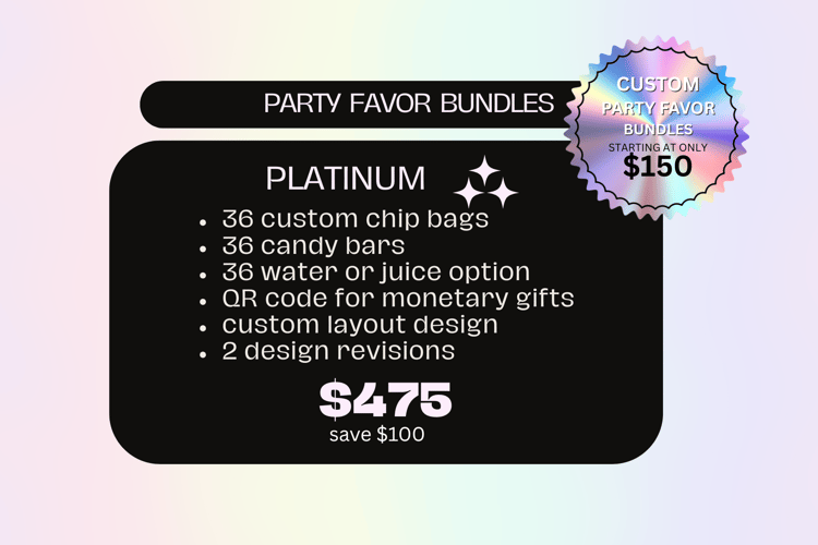 - Please schedule your free 30-minute consultation before ordering to confirm event dates, turnaround time, and custom needs by clicking the link ✨ Let’s Plan Your Party! ✨