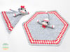 • Mary Maxim Starlette Yarn — 100% Acrylic 3.5 oz (100 g) and 180 yds (165 m) per ball: 2 balls of Grey Heather, 70 yds of Natural, 70 yds of Red, 2 yds of Black, 2 yds of Chocolate Brown