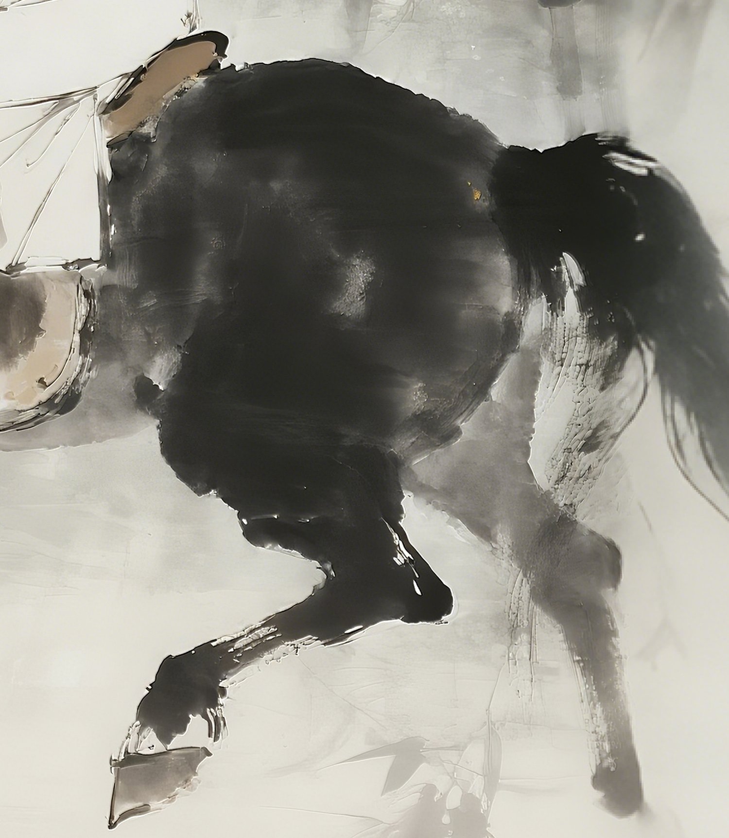 This artwork beautifully blends the traditional aesthetics of ink wash painting with the innovative touch of AI generation.