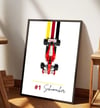 This minimalist and elegant composition highlights the iconic red Ferrari in a vertical gallery-style layout, bringing a powerful motorsport presence to your collection, office, or display space.