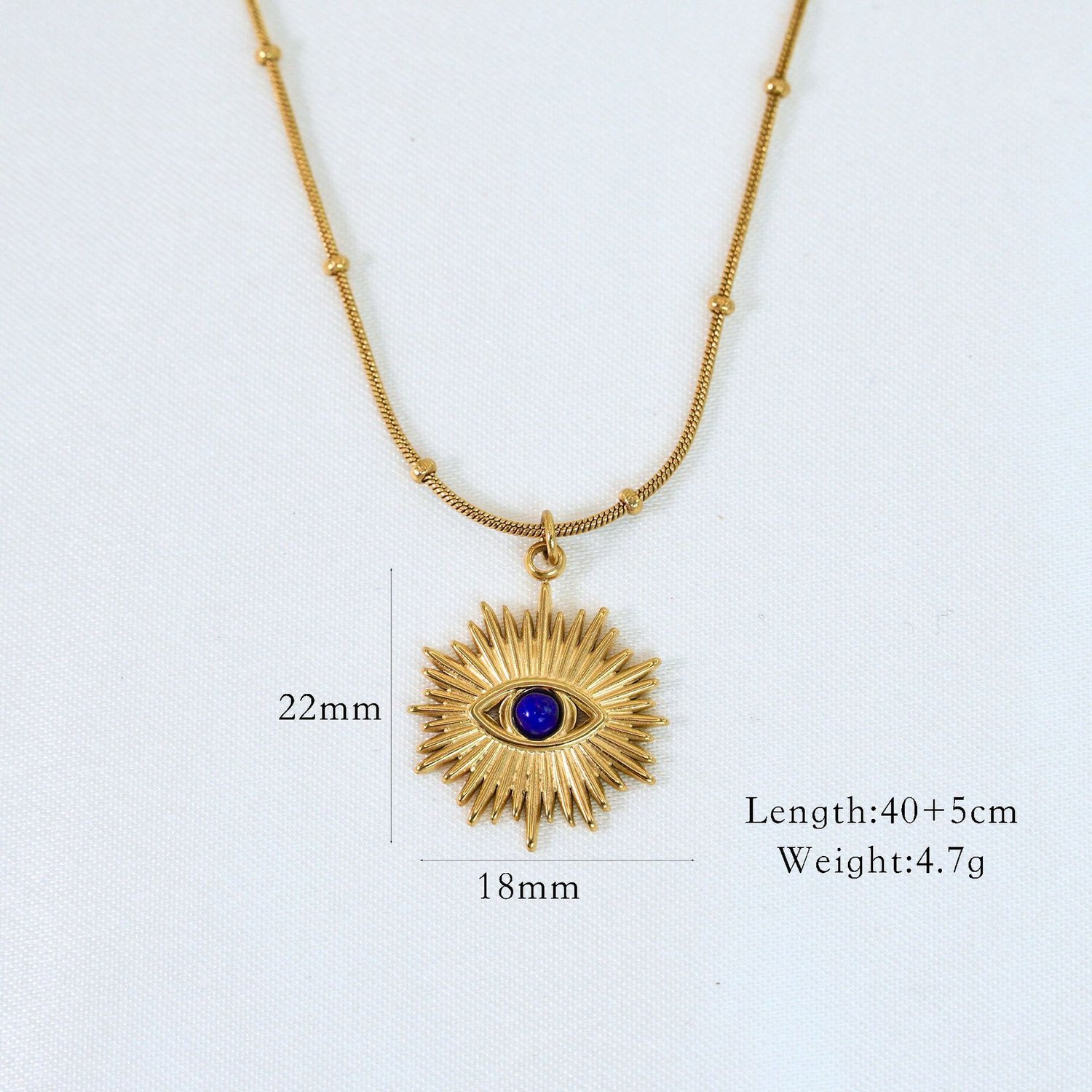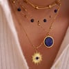 French-style vintage luxurious handcrafted lapis lazuli natural stone eye star stainless steel 14K gold layering necklace