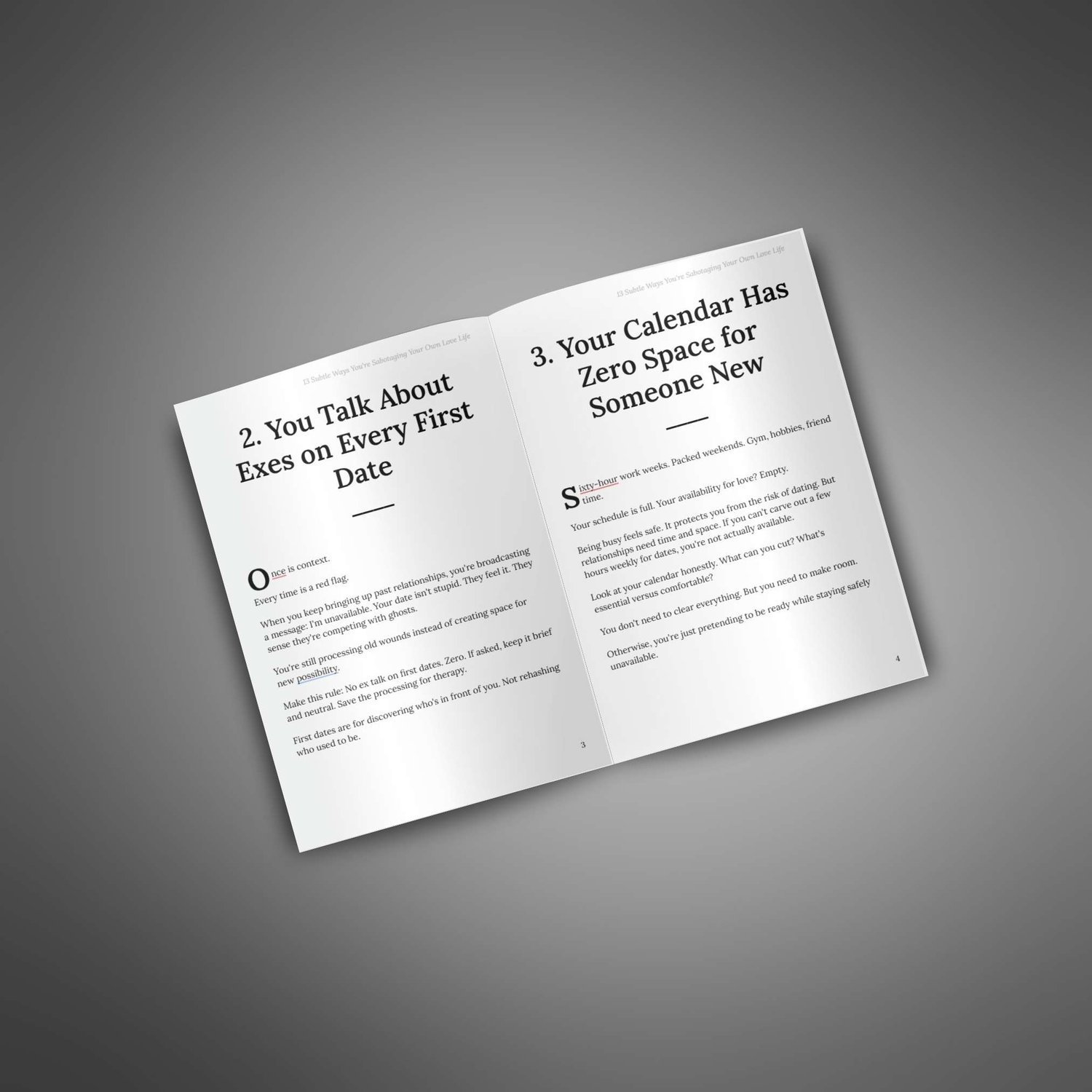 This guide walks you through 13 common but overlooked behaviors that sabotage your love life. Each one is explained in plain language with relatable examples that will make you think, "Wait, that's me." You'll finally understand why certain patterns keep showing up in your relationships and what to do about it.