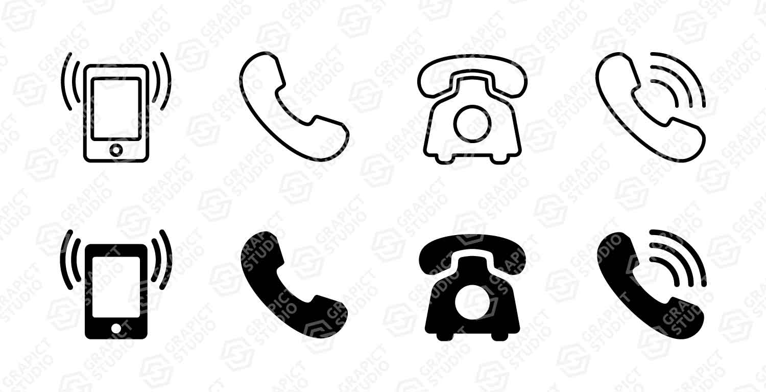 Telephone icon design. Creative illustration outlined style, editable stroke and flat glyph style icon. Vector clipart image, graphic design element.
