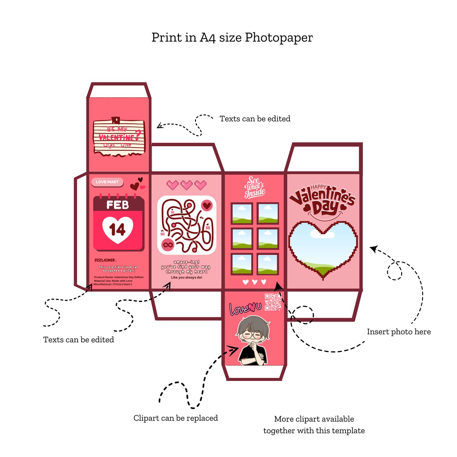 Make your Valentine's Day extra special with this customizable Blind Box Template! Perfect for personal or small business use, this design is great for creating unique and memorable gifts for your loved ones or customers.