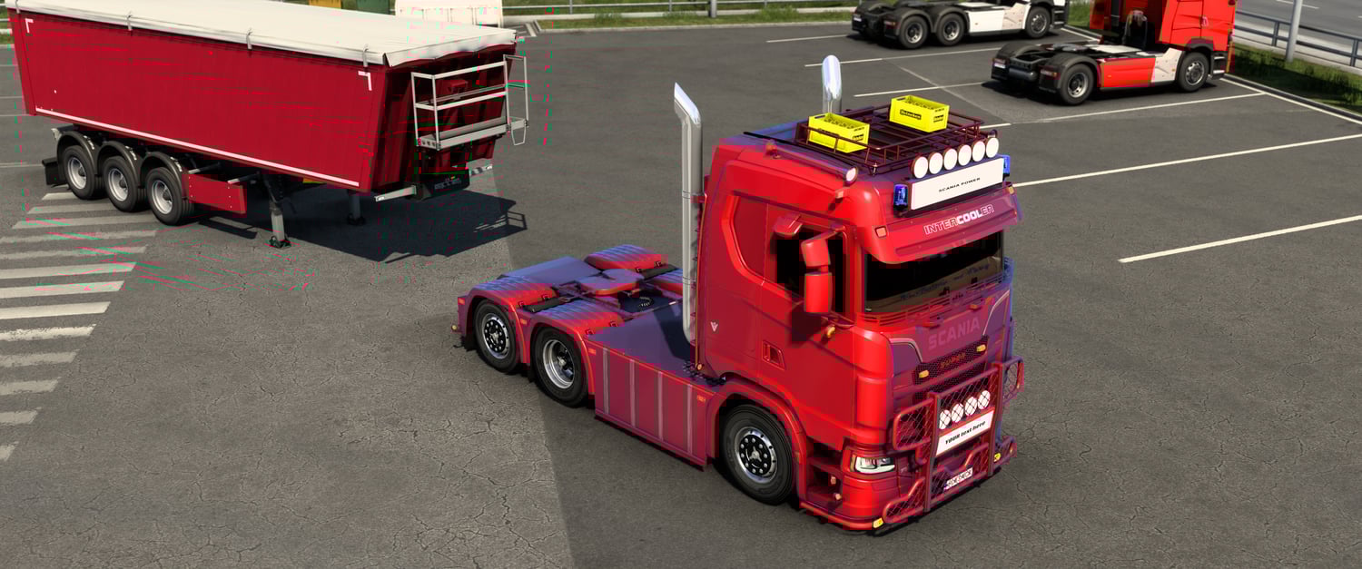 Scania Jost mod works only with Scania no spoiler mod V1 or Scania no spoiler mod V2 and not work with and Base game Scania truck