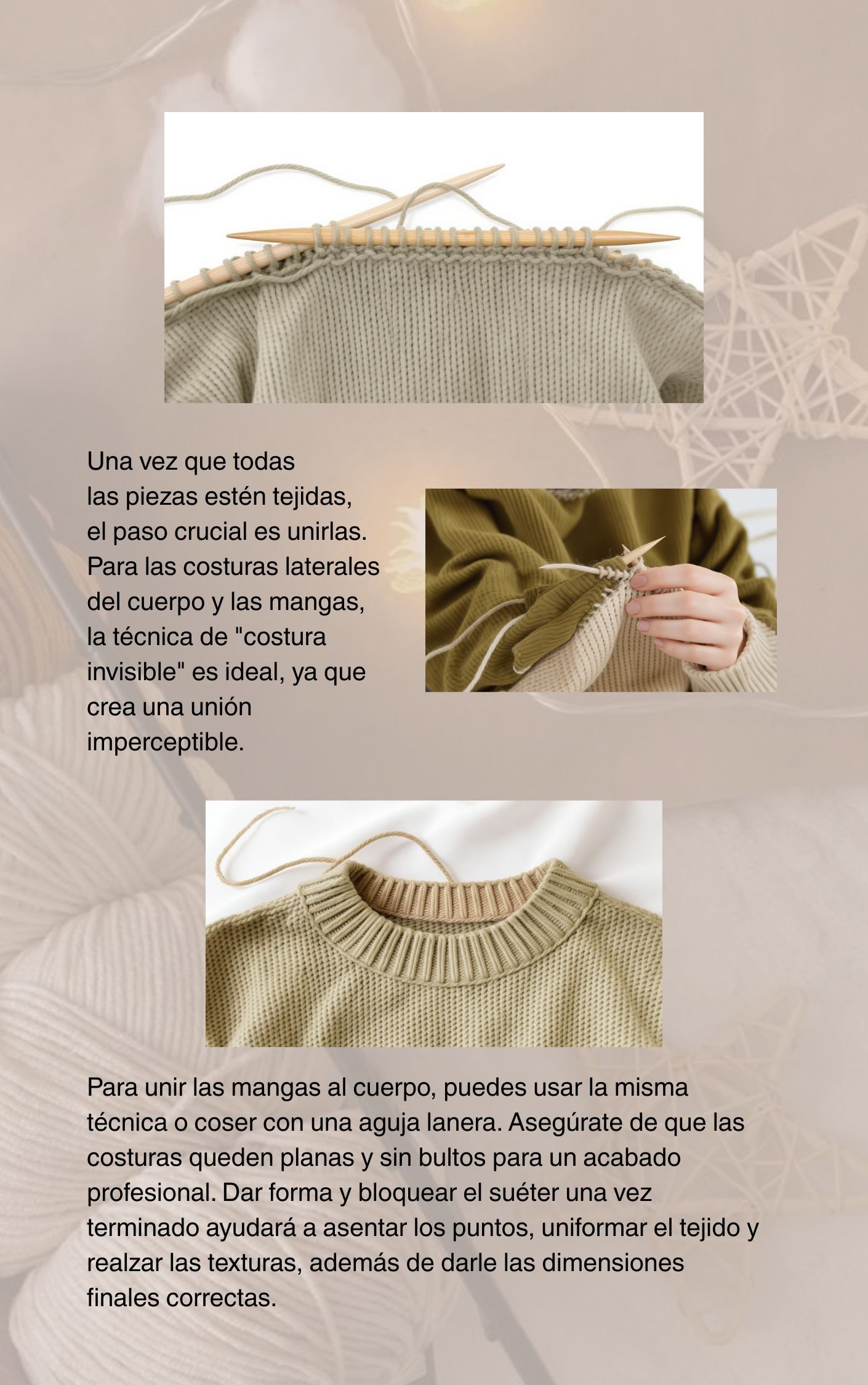 E-book dirigido para tejedores que principiantes que deseen explorar el fascinante mundo de crear ropa con puntos y palillos y para tejedores avanzados que deseen perfeccionar sus técnicas.