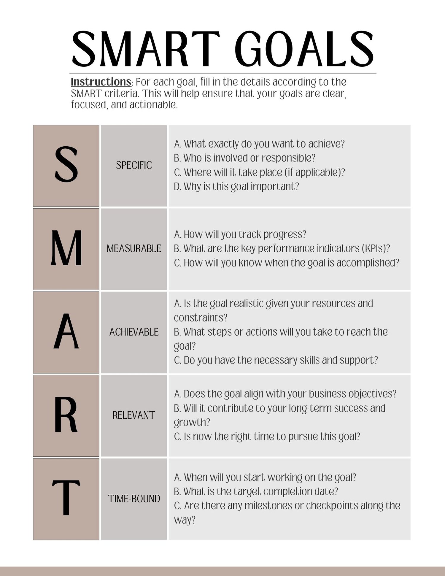 ⚠️ Note: While our workbook is a powerful tool, we do not guarantee any goal-setting achievement or success. The true success lies in the work done to identify, track, and complete the annual goals set forth.