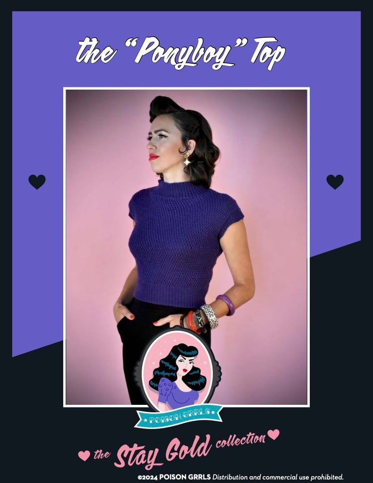“A neenie-neenie-ny I get Tongue Tied!” The Queen of Rockabilly herself, Ms. Wanda Jackson inspired this blouse named after her song. Tongue Tied is cropped, with a crew neck, mesh panels over the bust and upper back, and some garter texture on the sleeves. Dress this blouse up with your dancing shoes for a night out, or with jeans for a casually chic vintage look. Also works great under a cardigan!