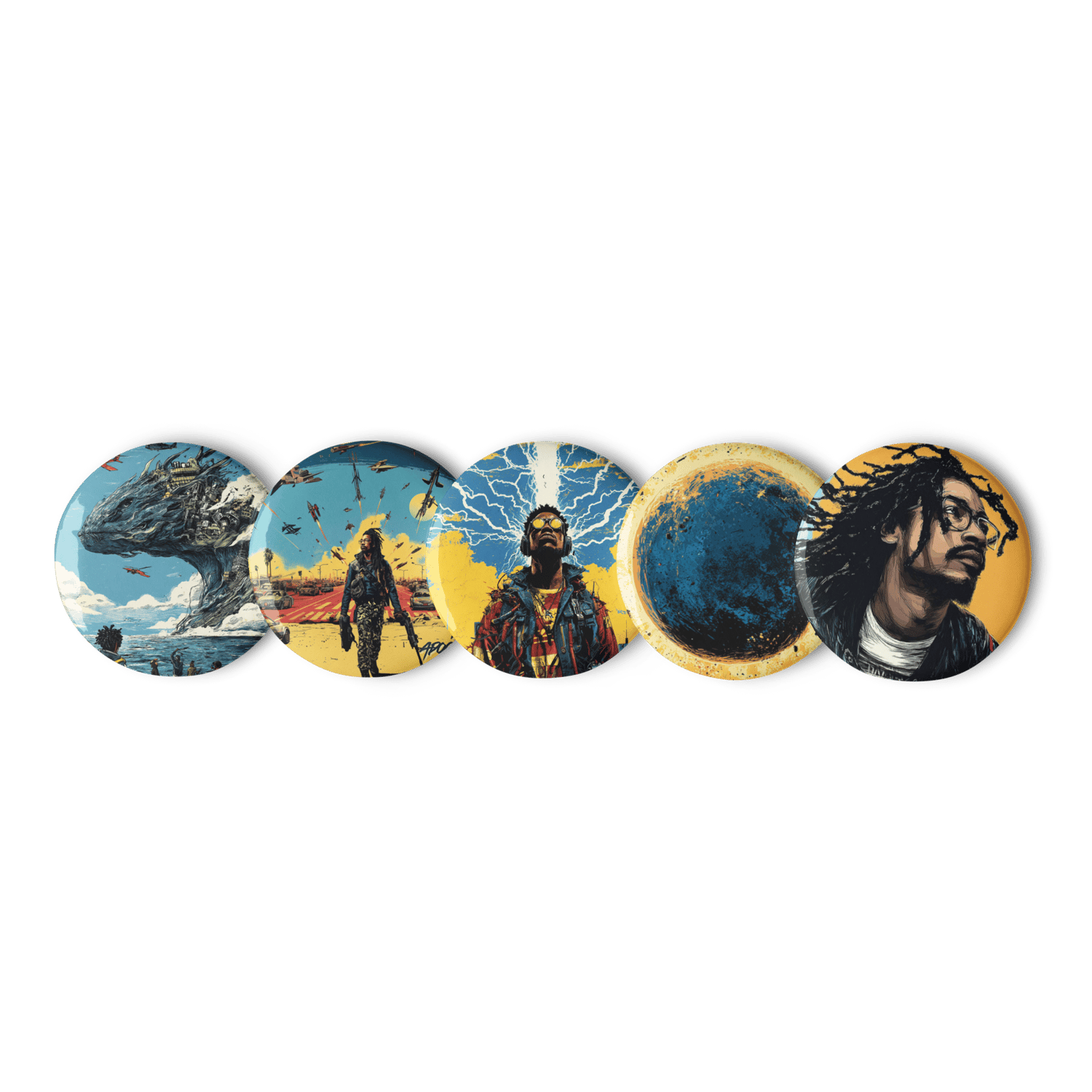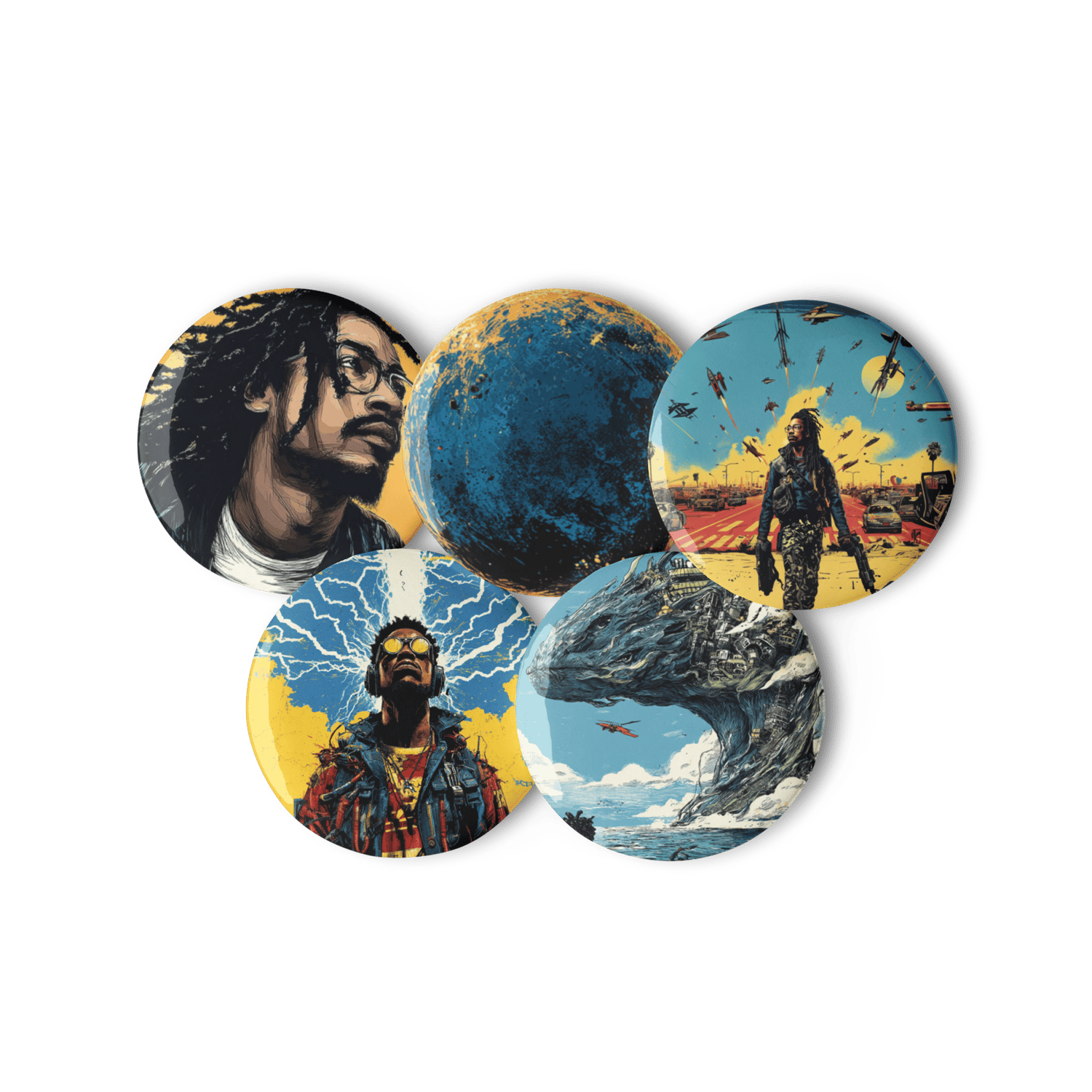 The set includes 5 lightweight and sturdy pin buttons with a glossy finish. The scratch and UV-resistant coating will protect your pins.