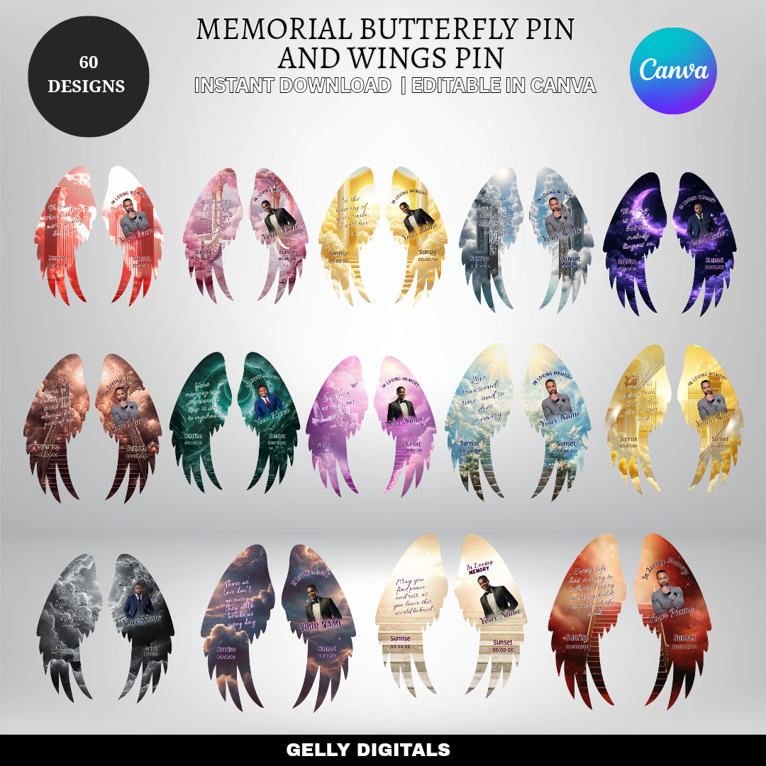 This pack includes 60 beautifully designed templates, all editable in Canva — no design skills needed! Perfect for funeral programs, remembrance keepsakes, or digital tributes.