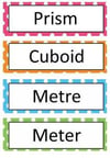 Bring math vocabulary to life with these 20 beautifully designed word wall cards focused on perimeter, area, and volume. Perfect for classroom Maths Word Walls, spelling lists, or vocabulary centers, these cards will support your students’ understanding of essential geometry and measurement terms.