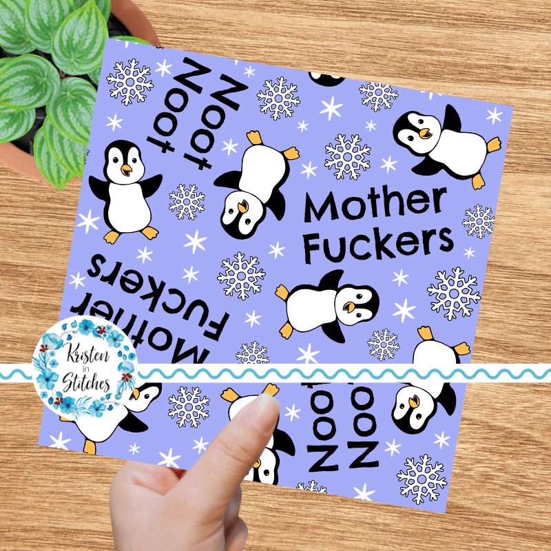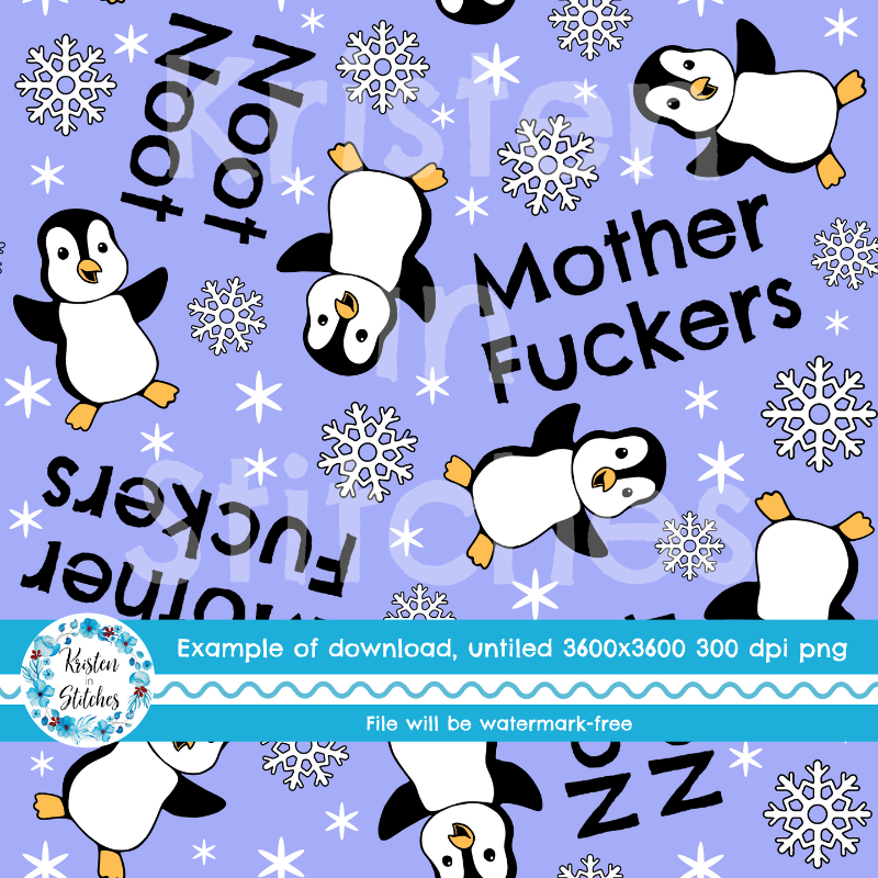 Noot Noot Mother Fuckers sweary seamless pattern with penguins.