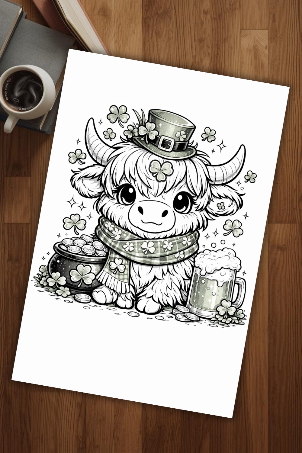 Our adorable cartoon cow, Bella Moo, is ready for the holiday fun—wearing a festive shamrock hat, surrounded by lucky clovers, and spreading cozy vibes. Perfect for kids, adults, or anyone who loves whimsical, stress-free coloring.