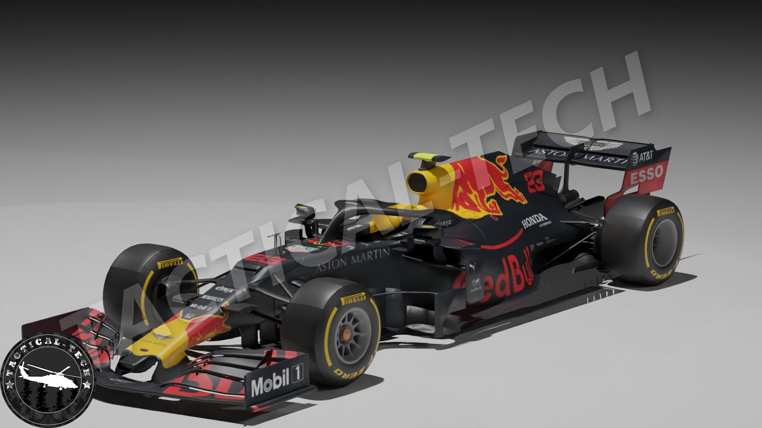Red Bull Team Texture: The vehicle's bodywork has the distinctive texture of the Red Bull Racing team, with the characteristic colors of blue, red and yellow, along with the team's logos and sponsors. This gives it an authentic and recognizable appearance as a Red Bull racing vehicle.