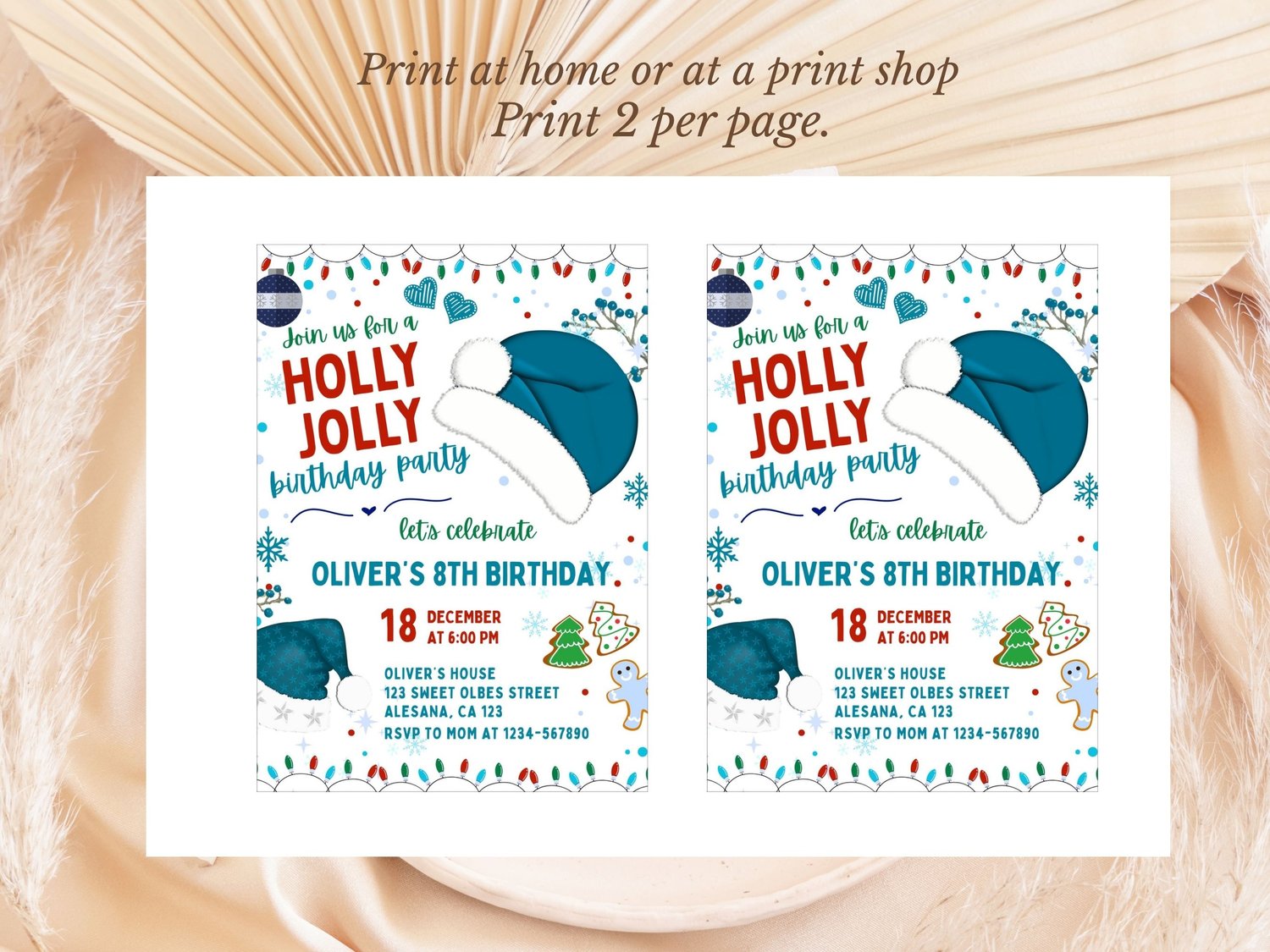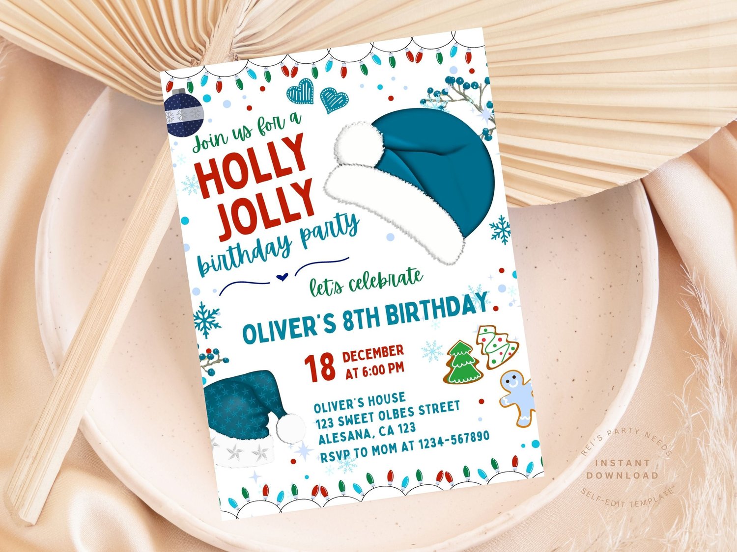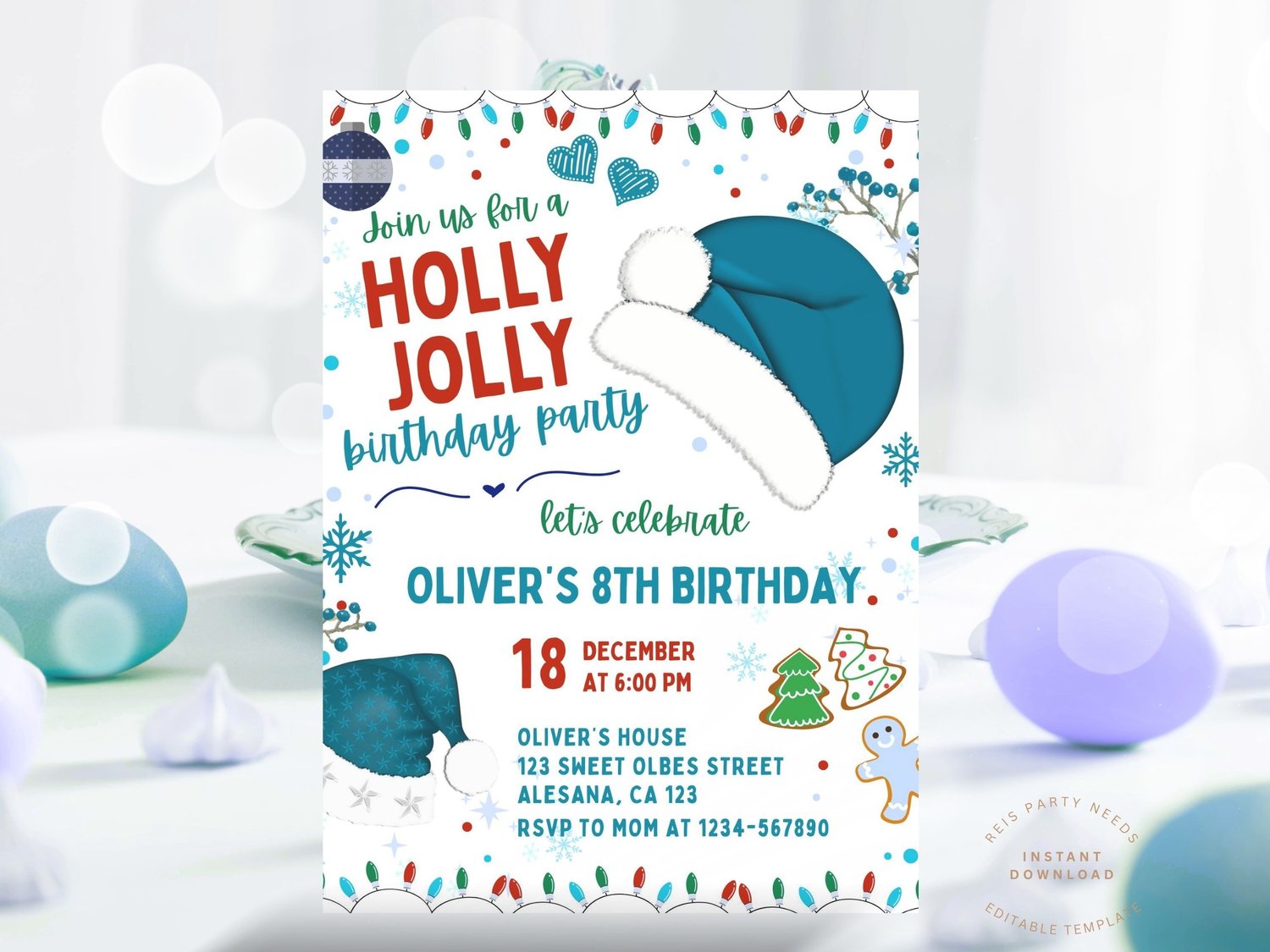Christmas Birthday Invitation Boy, Christmas Party Template, Boy Christmas Birthday Invitation, Blue Holiday Theme Birthday Party Any Age