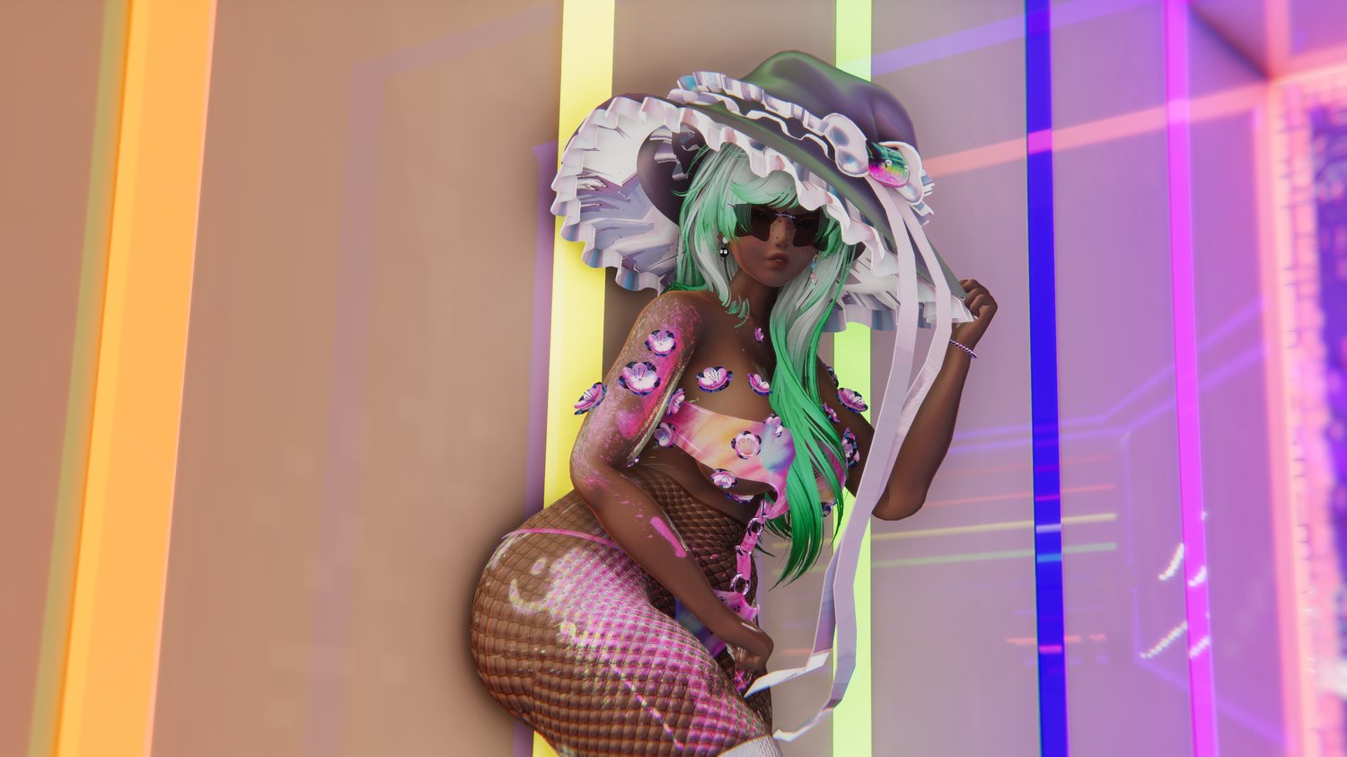 Body (sculpted) - Head (heavily sculpted) - Head and Body Texture - Dress - Bodysuit - Earrings - Glasses - Beanbag - Socks - Fishnets - Star Particles - Face Stickers - Bracelet - Hat - Nails - Hair 1 - Hair 2 - Hair 3 - Babyhair - Bra and Shorts - Moo Deng - Tights - Platform Shoes - Blossoms - Bikini - Tattoos - Mouth Chain - Shoes - Dog Balloon - Cloud - Panties - Makeup - Wings