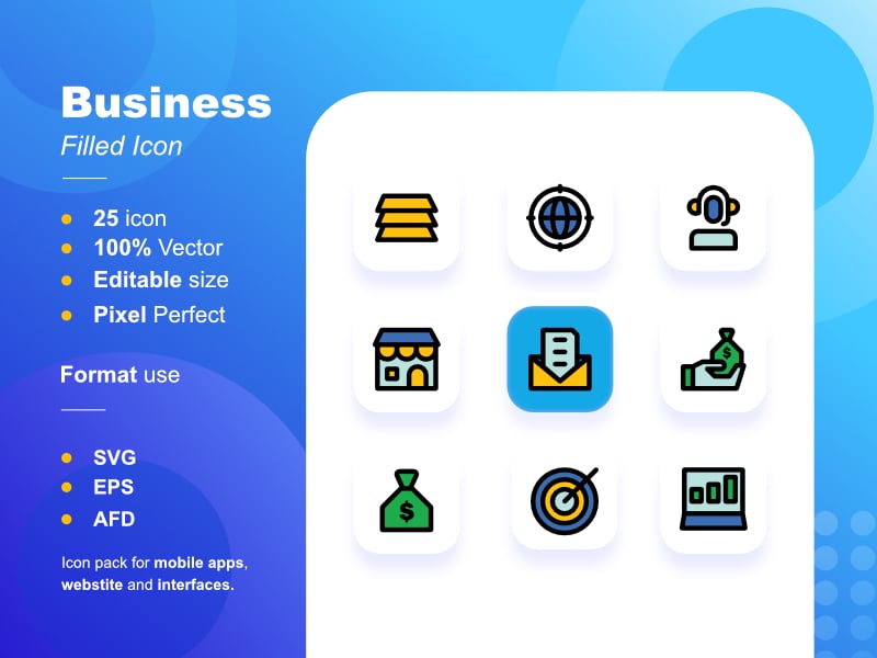 Icons are available in various file formats, are easily edited, and can be flexibly integrated into your design or website.