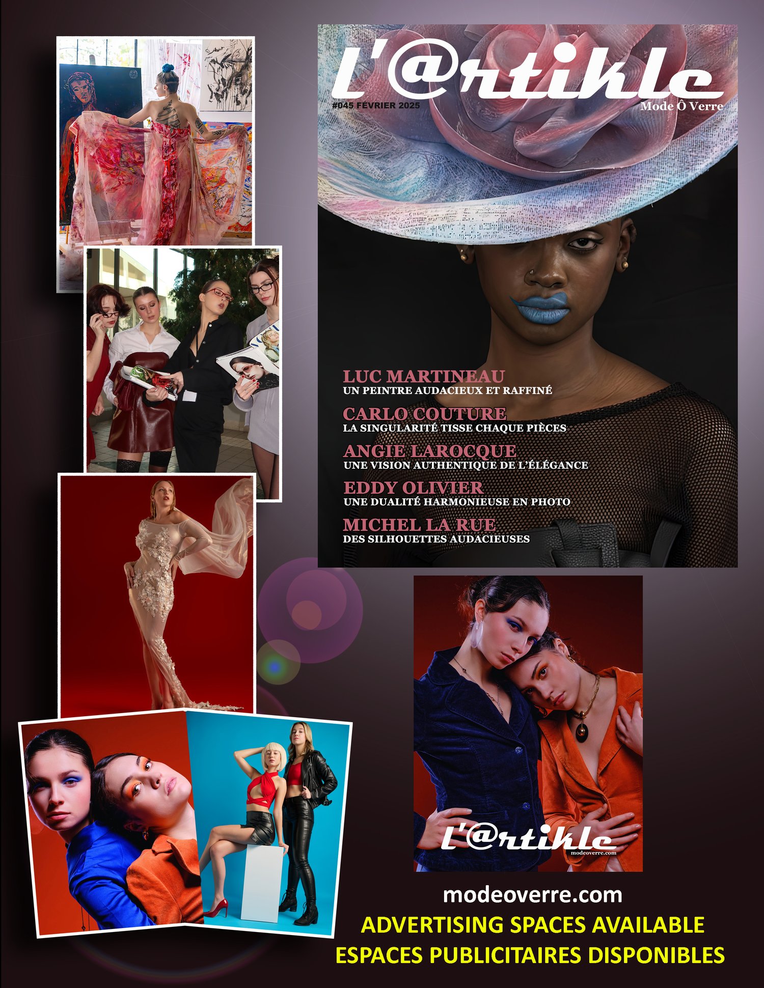 Dans cette édition, nous avons eu le privilège de s’entretenir avec Luc Martineau. On y découvre son cheminement créatif, son inspiration issue de la psychologie et du symbolisme, ainsi que l’importance de l’élégance et de la mémoire transgénérationnelle dans son travail. Il partage notamment son expérience avec des designers de renom, comme Frank Sukhoo et Madeleine Cormier, et explique comment il adapte son style abstrait aux textures et dimensions uniques des vêtements de luxe.