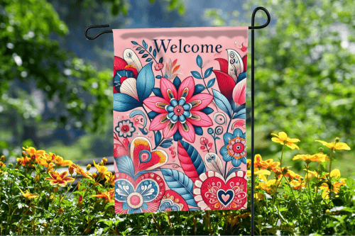 Valentine Garden Flag - Welcome Design