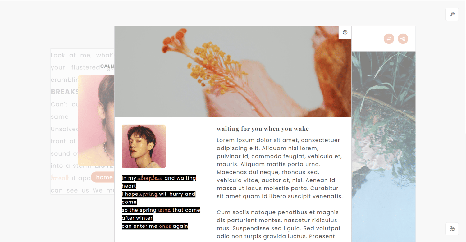 ** you have to go directly in the code to edit these parts. also, the lyrics/text are to be edited in the code too.
